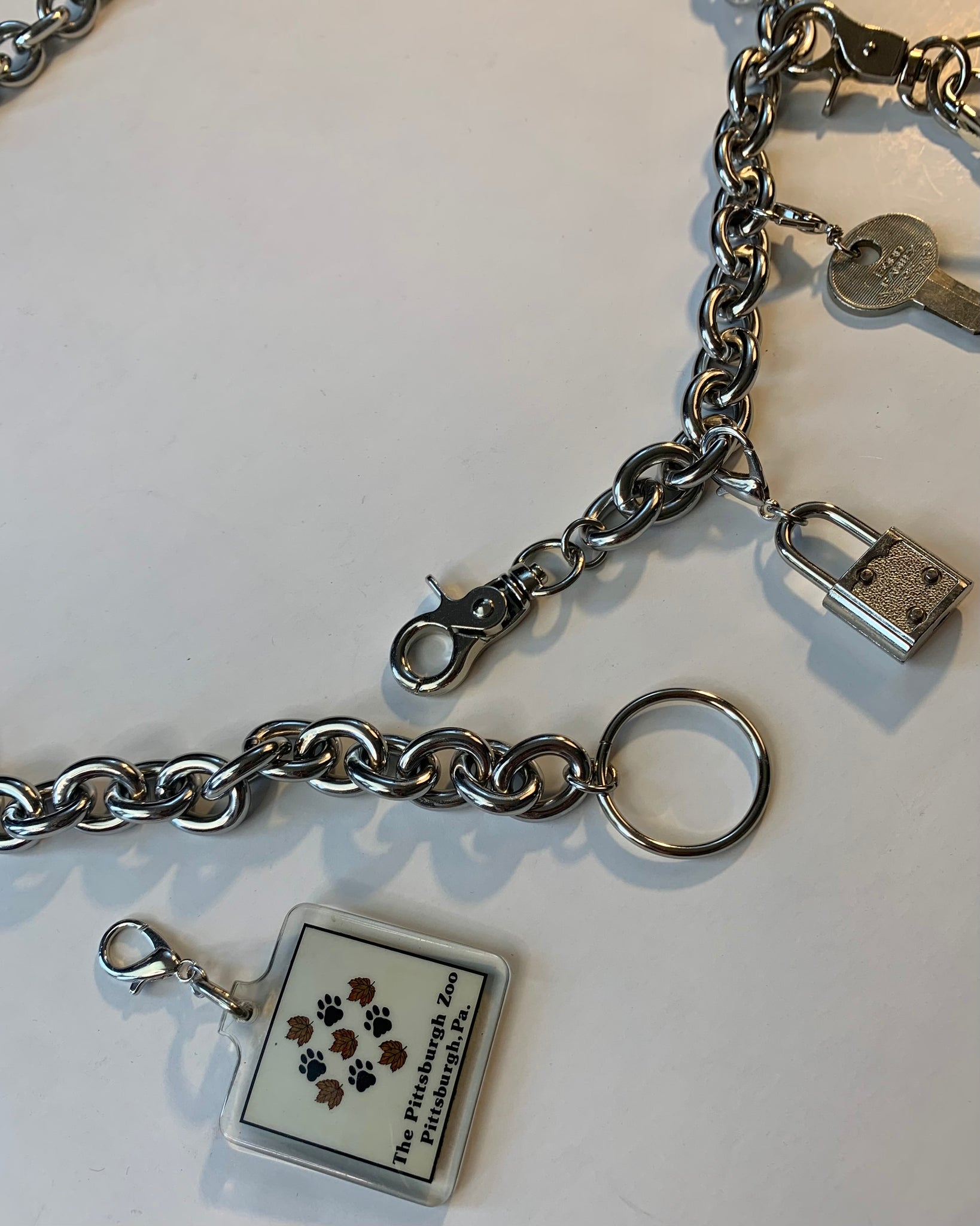 One of a kind hand crafted charm belt with mixed vintage photo charms, toy charms and vintage key and padlock on a thick 15mm stainless steel rolo chain. Each one will have unique charms but all have a similar vibe. There is an option to have only the padlock and key charms, or multiple photo and toy charms as shown in photos. All are removable/adjustable. Made to order in house by us, with lotsa love.