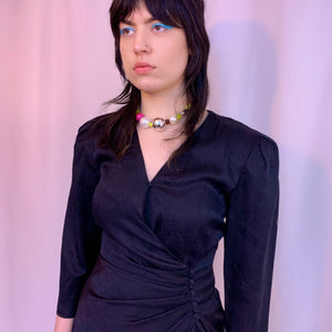 Vestido de sobrepelliz fruncido de seda de los años 80