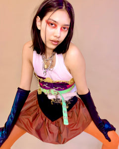 Vestido reciclado con dobladillo de burbujas y aberturas fruncidas
